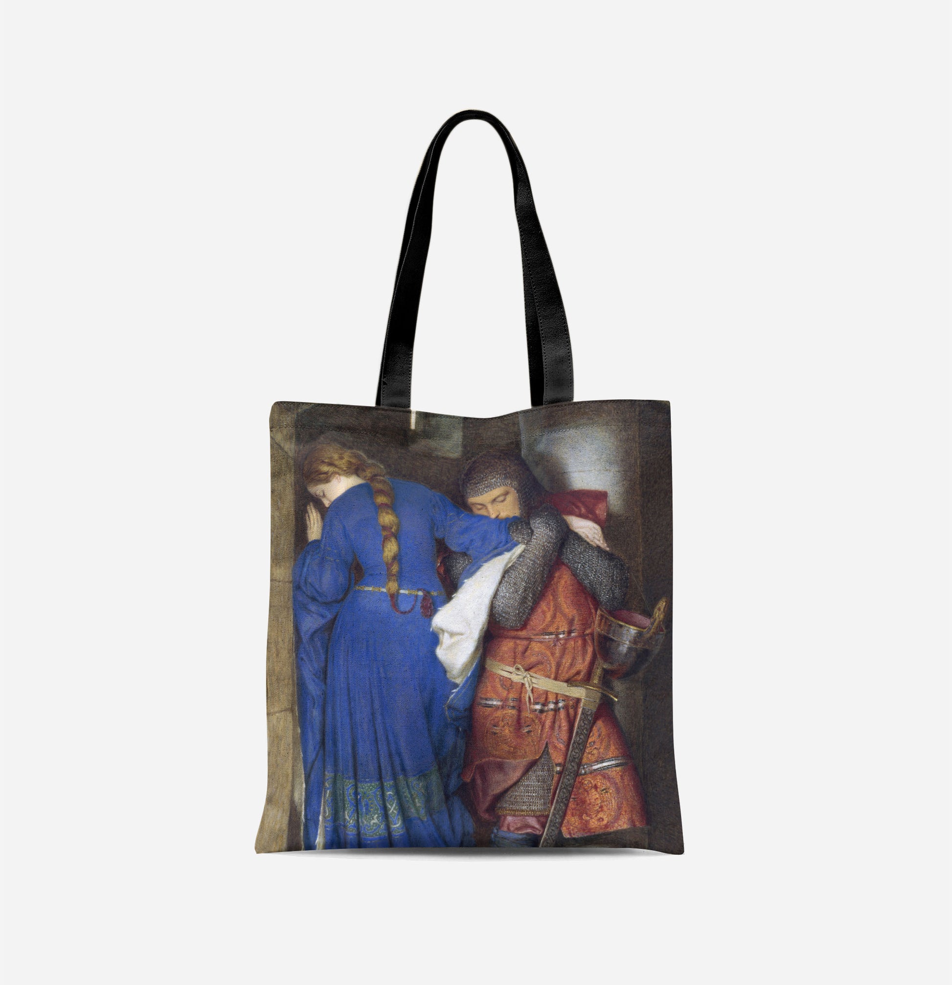 A tote bag of Burton's popular Meeting on the Turret Stairs, featuring the painting on both sides, with a matching black strap.